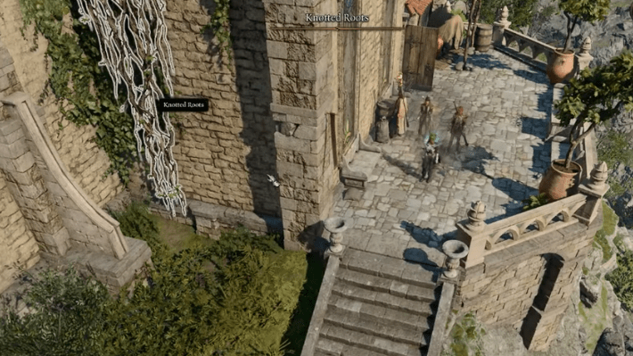 After talking to Danzo the Postmaster, head upstairs inside the courier shop to find a pigeon coop. You need to have the Speak with Animals spell to talk to the pigeon there. After you get a hint of where to go, visit the Open Hand Temple. You can find the temple if you head west from the courier store. Once you are here, make your way to the roof. To reach the roof, head inside the temple, turn right and enter through the door at the end of the passage. This will lead you to the kitchen, where you can find another door that leads to the outside of the temple. Exit through the door, go down the stairs on your right, then investigate the Knotted Roots on the wall. Use it to make your way up to the roof.