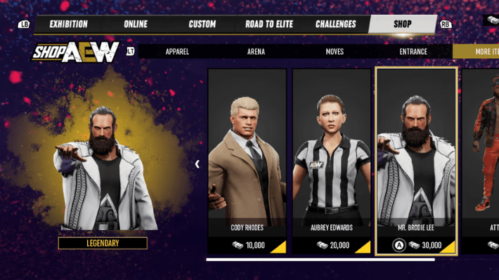 Since the chances of triggering the Dark Order storyline are random, you would have to repeat RTE a couple of times. Eventually you will meet John Silver, who will ask you whether you wish to join the Dark Order. It doesn’t matter what you do, as you and John Silver will be matched. Make sure either of you wins subsequent matches, and eventually you will be kidnapped by Brodie Lee. He will make you an offer, and you will face him during the Pay-Per-View match. Defeat Brodie to unlock him in the shop, and now you can purchase him for 30,000 credits.