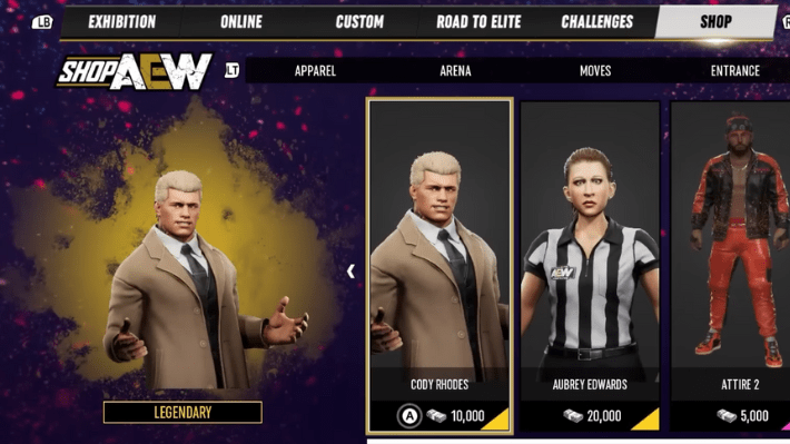 You can quickly add Cody Rhodes to your roster by purchasing, but you need 10,000 credits first. If you are short on cash, there are several ways to get credit. By playing the game and winning matches, you can acquire enough AEW Credits to use in the in-game shop. Credits can also be used to purchase props, costumes, and other customization options. It might take a while to accumulate such a large amount of credit. However, by constantly playing the game and trying all the modes will help you out.