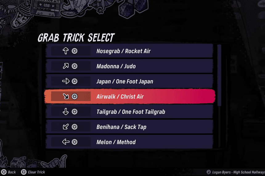 - Customize your trick to your preference: Since the Airwalk isn’t attached to a natural direction, resetting it in the pause menu will allow it to be easier to land.