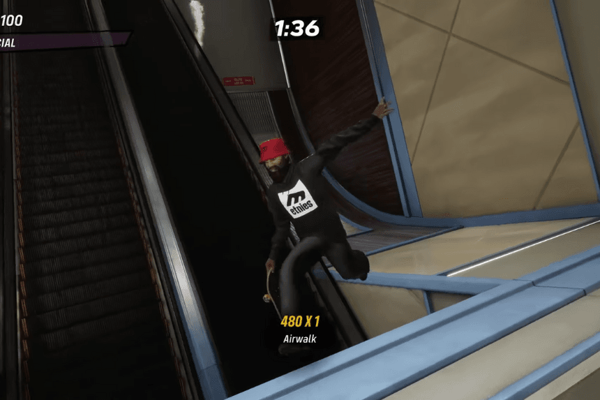 The goal itself is simple enough to envision: do an Airwalk trick while walking over any of the airport’s escalators. But due to the specific trick input, angle, and air time required, some setup choices are more favorable than others.