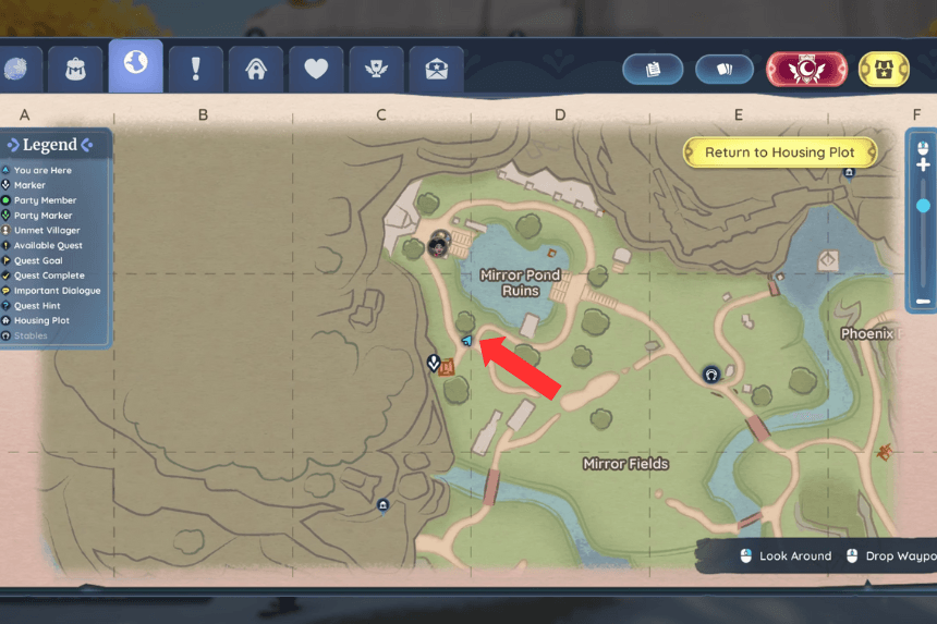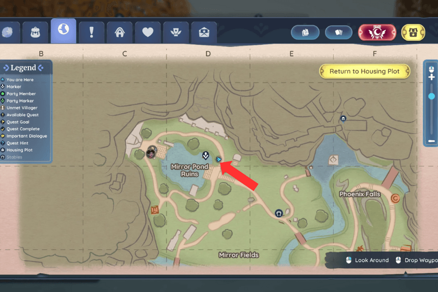 This points towards Mirror Pond Ruins. You have to look for the tall fallen column leaning against a tree. The chest appears at a very high position. It’s a bit tough to get. Just glide towards the tree and mash your interact button.