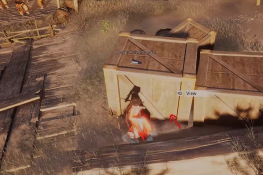 The second treasure can be found on the left side of the road, placed on some boxes.