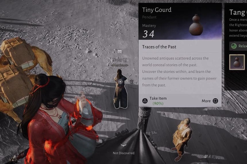 To grab the Tiny Gourd, you will have to use Celestial Theft on the merchant Tang Qi at Lost Crossing and then steal the item for yourself. After obtaining the item, enter the nearby boat building and access the shelf inside. This completes your acquisition of the Tiny Gourd and allows you to learn about its history.