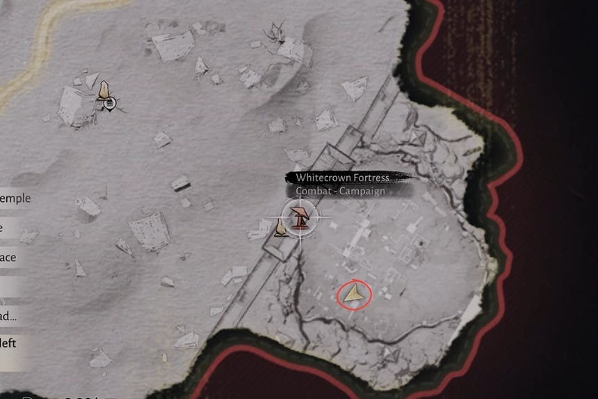 Go to the southeastern part of the map and enter the fortress to unlock the spear’s backstory. You can unlock the spear’s history by interacting with it at the point marked on your map. If you’re visiting this fortress for the first time, you’ll need to complete the side quest; the White Crown Fortress Campaign which begins just after opening the main door. After completing that quest, return and interact with the spear to finish the final antique.
