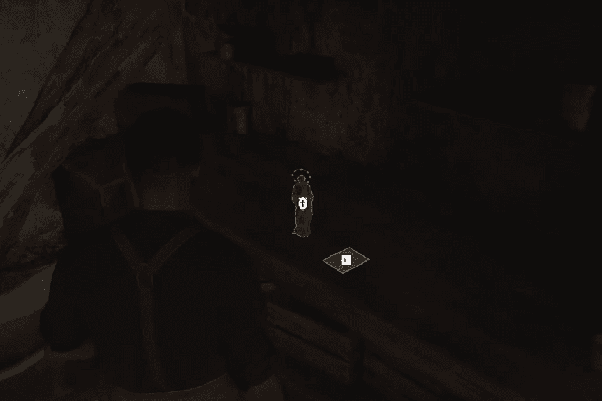 Around halfway through Chapter 8 (Disgrazia), players will be looking for the forger. When entering the room with the printing press, one of the Torrisi Mafioso will pull a gun on the player by mistake, then tell them the forger is not present. Players must return inside the room before heading off to look for him, where they will notice the San Bernardo da Corleone charm on a table to their right.