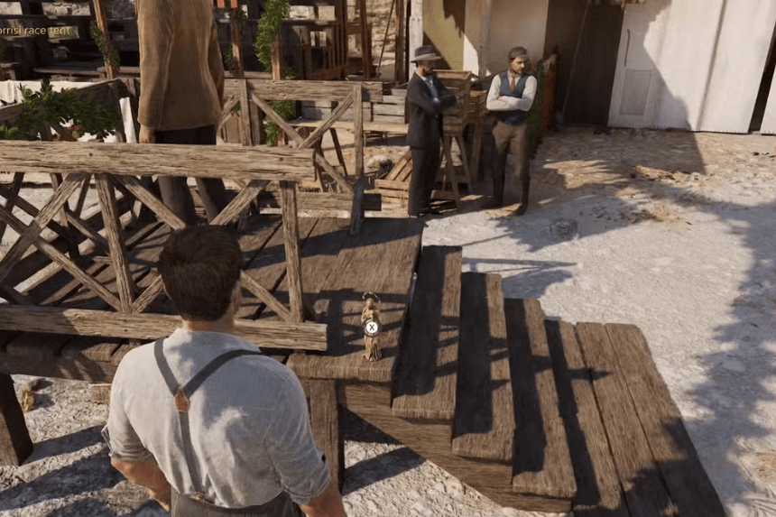 Enzo and Luca will horseback ride to Collezolfo for a big horse race in Chapter 2 (Palio). Players need to glance at the wood steps to the left of the entrance to enter the Torissi race tent to look for the Fortunato charm.