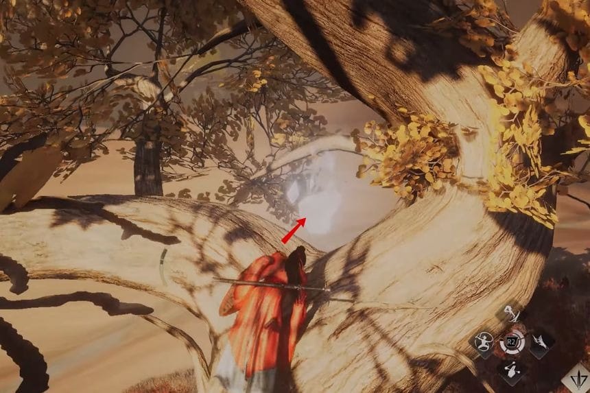 To find the fifth chest, head over to the marked location, and you’ll find a huge tree in front of you. You’ll have to climb that tree to get the chest that’s resting on the thick branch on the left.