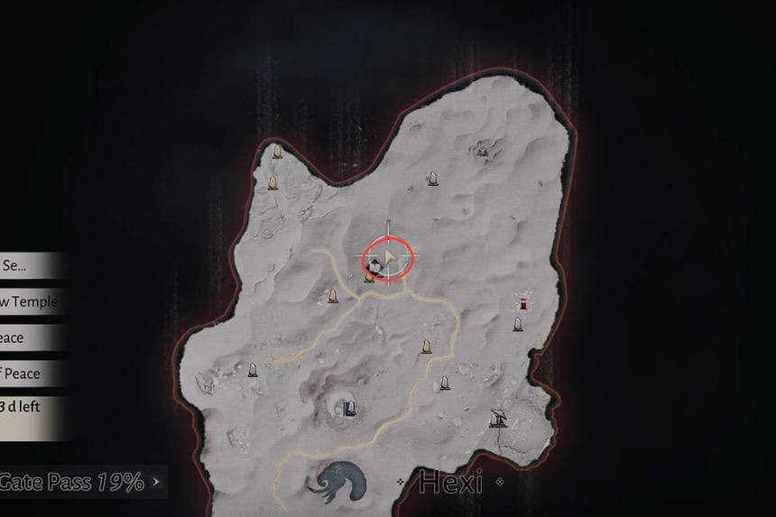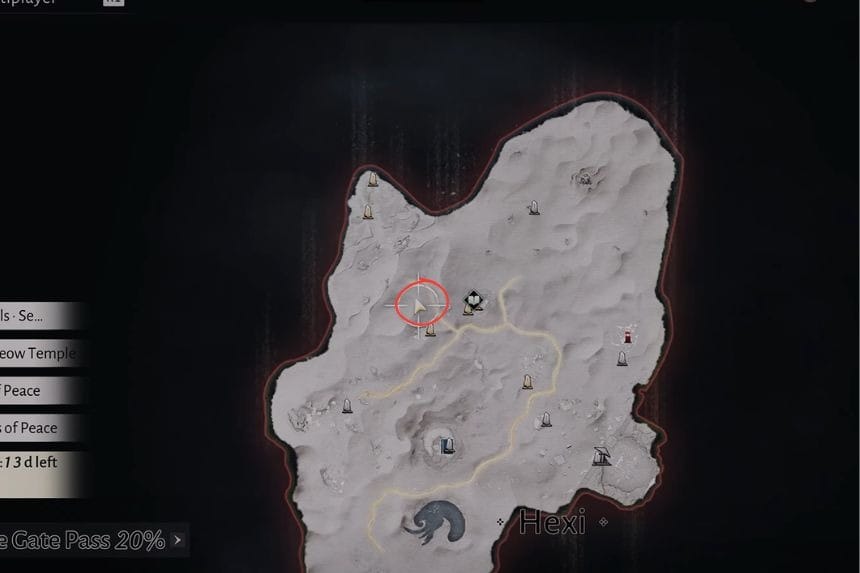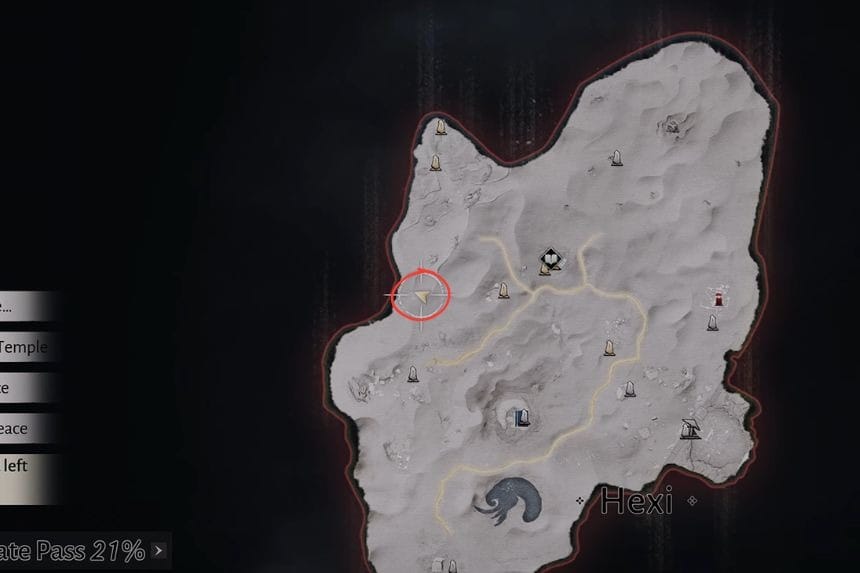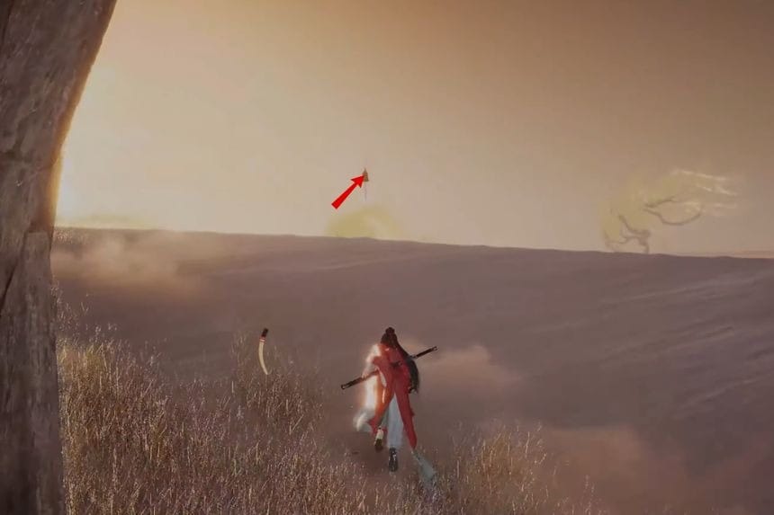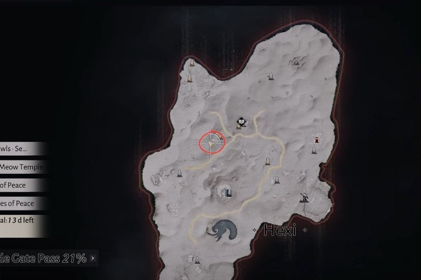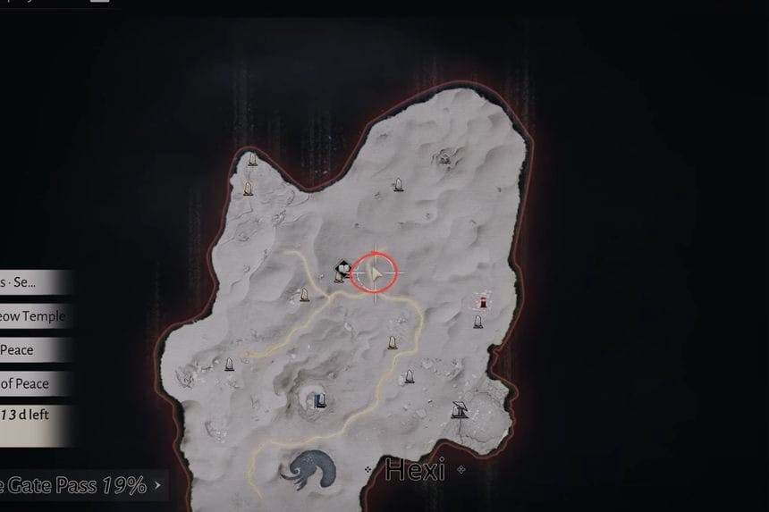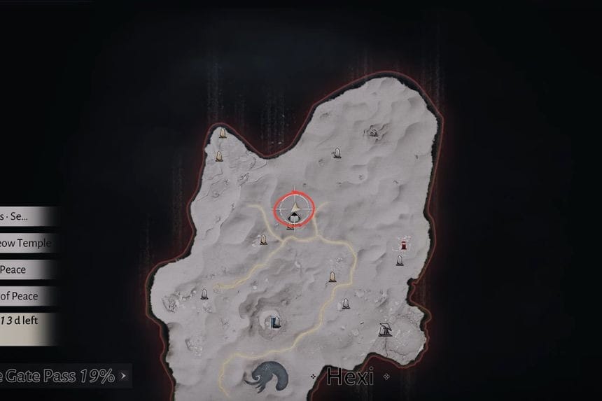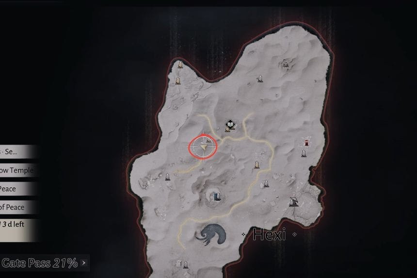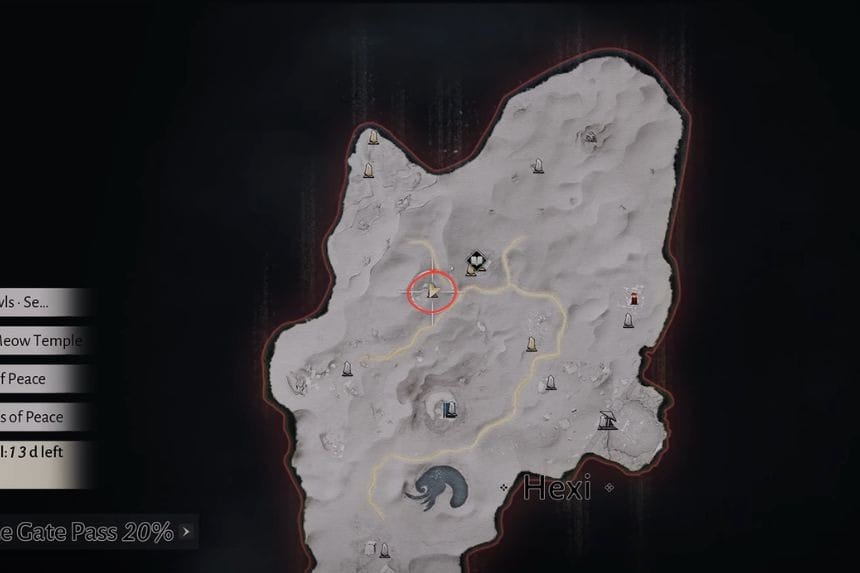 The 19th chest can be found right in the center of the Hexi region. Once you reach the marked location, you’ll find a barren tree in front of you with a sort of hut on the right side. The chest can be found right in front of the tree.