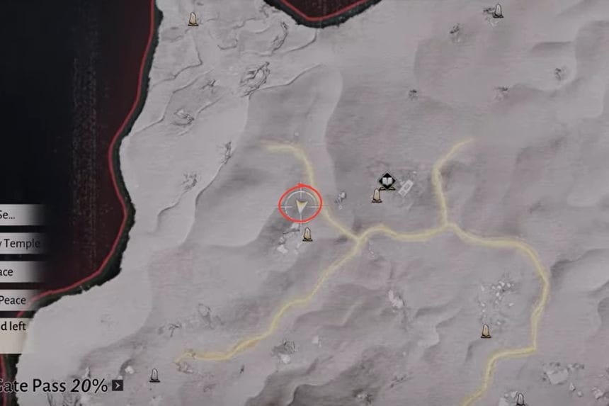 Go to the location marked in the image above, and you’ll find a man leading a caravan of camels. If you look towards the left, you’ll find a signpost; this is where you’ll find the 20th chest.