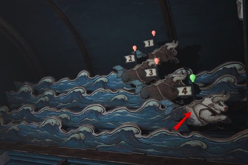 To play the third carnival game, you’ll need to head over to the northwestern side of the map again. This game is fairly simple to play as well, you’ll just need to keep clicking rapidly and increase the speed of the ophiotaur so the one controlled by you wins the race against the others. After you win, a button of sorts will open up on the game setup, and you will be rewarded with 350× Fair tickets.