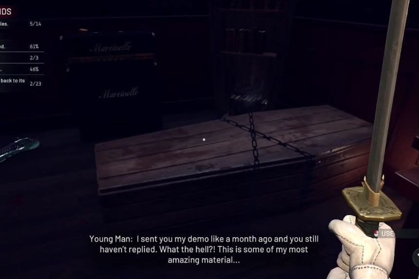 Go to Holden’s son’s room, and there you will see a box that has a duck sitting on it. There are various duck dolls lying about everywhere in the room. For every duck doll you beat, a chain attached to the box comes loose. Continue searching for more duck dolls to beat until all the chains on the box come off. The box will now open, giving you the CD and the Secret.