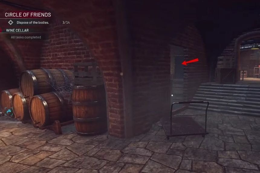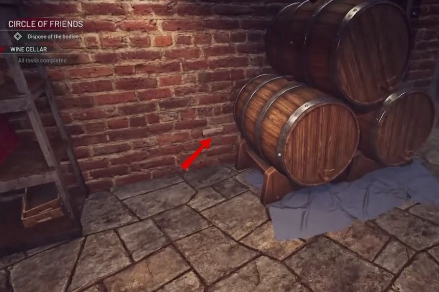 The secret can be found in the wine cellar. Go to the wine cellar and explore the area where the wine barrels and the bullet marks can be seen. There will be a brick that appears to be loose, but the brick is actually covered with cobwebs, which means that it cannot be interacted with yet. All you have to do is clean up the cobwebs using the mop.