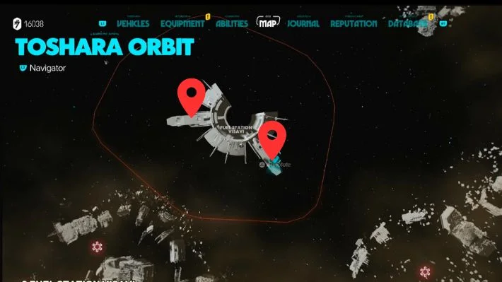 There are two treasure chests located on either side of the Fuel Station Visavi’s wings. But this is a Restricted Area and you will get a Wanted Status if you linger around here. Quickly make your way to the western wing and get into the entrance of the wing before the enemies shoot at you. There is another entrance on the same wing where the treasure chest is located, just head out and quickly swoop back into the second entrance. Unlocking the chest will give you the X-FP-C28 Ship Computer