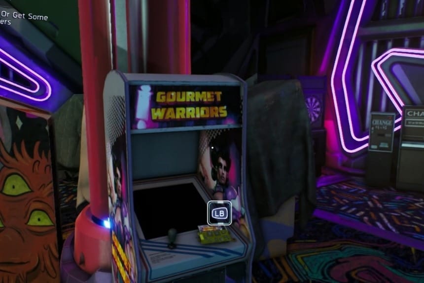 The first one you can grab is the Gourmet Warriors. To get this, you’ll need to go to the quarters and find the arcade machine that’s on the middle floor. Next, simply pick up the cartridge and insert it into the machine.