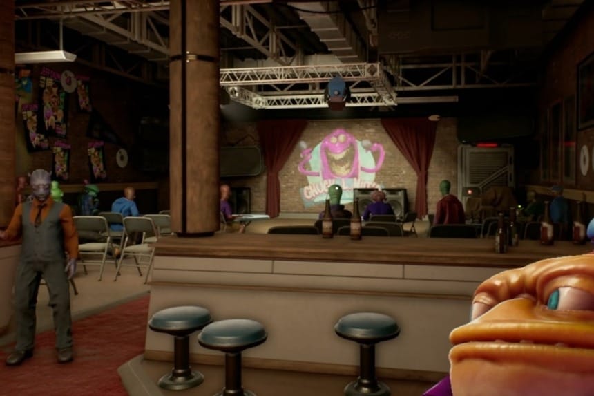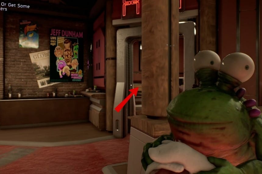 Keep shooting the eggs using Sweezy whenever they block your way to make the creature get to the end. This will then open up a new door for you that will take you to a comedy club. Inside the club, they’ll mistakenly identify you as Jeff Dunham and tell you to get up on stage for comedy. Doing this will take 2-3 minutes, and when you’re done, a door to your right will open up that will lead you to the cartridge.