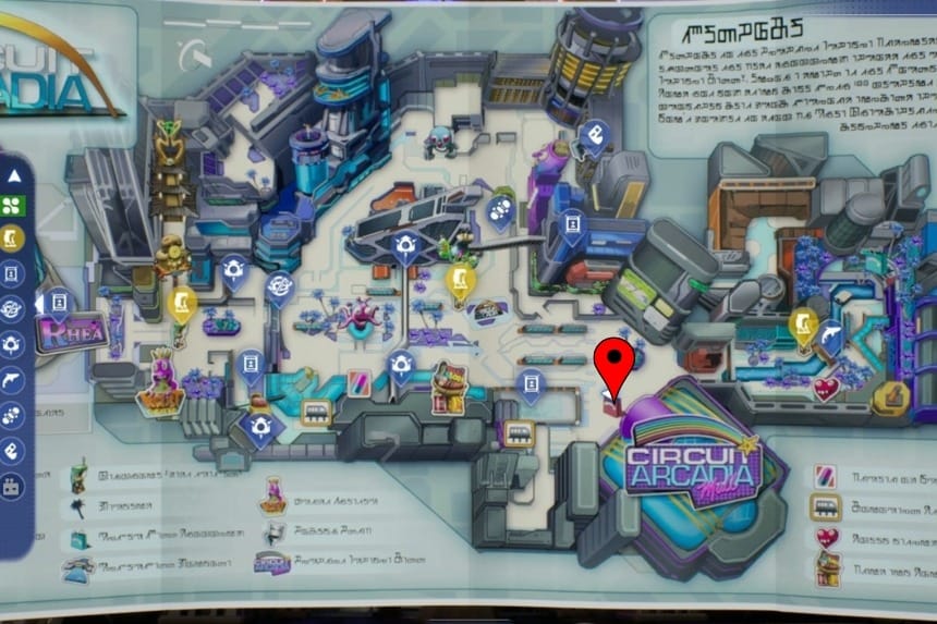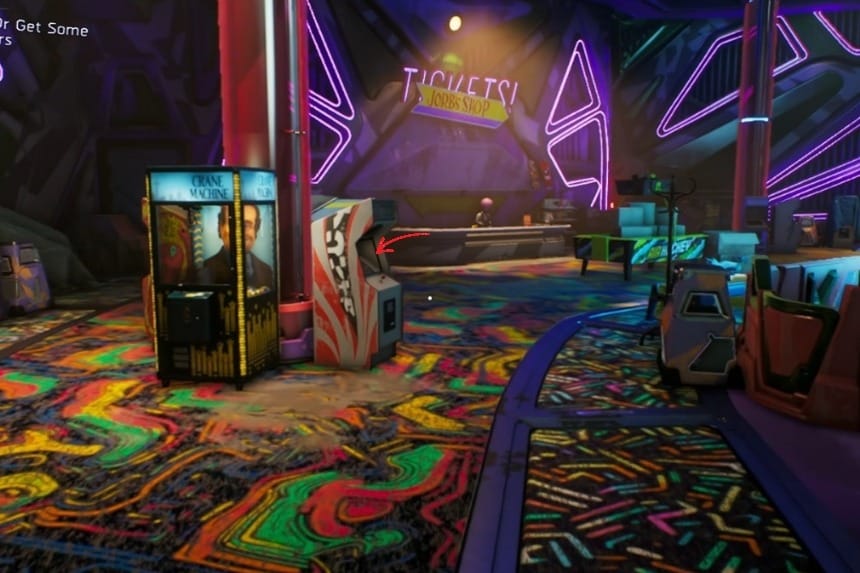 The next one is B.O.B and to get this, you’ll need to go to Circuit Arcadia and head over to the marked location, which will take you to the Krust Theatre. Go inside the theatre, keep to your left, and you’ll find the arcade machine and the cartridge.
