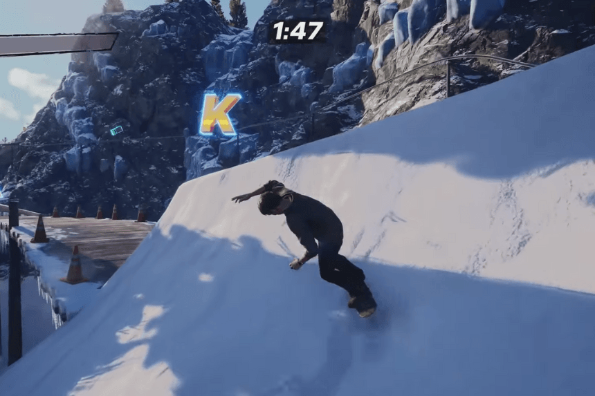 Thematic challenge to this iced level, pond icing is grinding along the pipe near the iced-up water attraction. Begin a grind along the top pipe through the ramp adjacent to the pipe. There is a cutscene brief with the pond icing after the grind. Apart from completing the goal, it also opens up a new skating path.