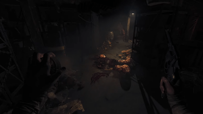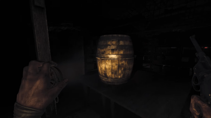 Now that you have made your way inside Storage Room B, you will notice that your path ahead is blocked by shelves. There is an explosive barrel on the right side that you can place near the shelf and shoot at to clear the path. You should immediately hide if you do this, as this will attract the monster. Once the coast is clear, head deeper inside and you will quickly find the dynamite resting on the table in The Explosives Storage.