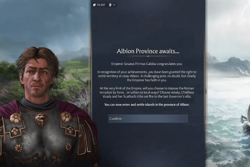 In sandbox mode, Albion stays locked until you get to Tier III in Latium, meaning upgrading your Eques residents. Once you hit that milestone, the second province opens up.
