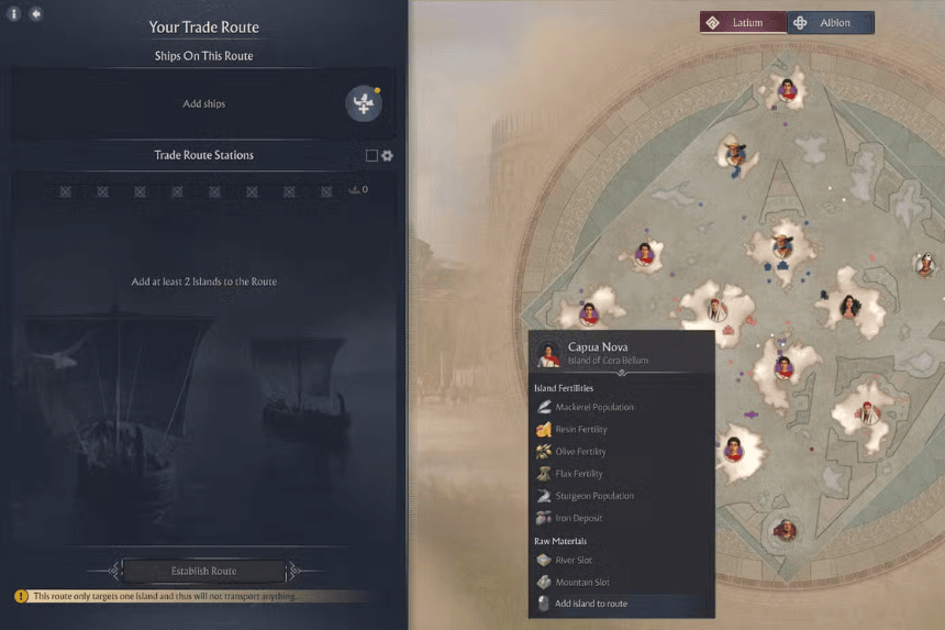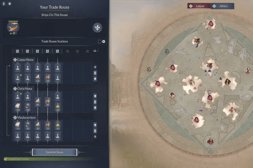 As your cities grow in Anno 117: Pax Romana, you will inevitably reach the point where you’ll need resources your main island can’t provide. That’s when inter-island logistics, and later, inter-provincial logistics, became a necessity. You can haul goods manually for a while, but once your economy expands, setting up trade routes becomes the only sane way to keep everything running smoothly.