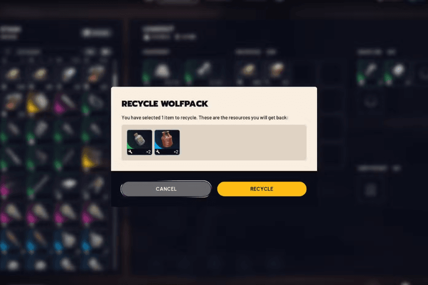 Recycling these guarantees Synthesized Fuel returns, but it’s not always worth it. Wolfpack grenades, in particular, are too valuable to destroy unless you have extras lying around. If your inventory is overflowing, though, recycling is a good fallback option.