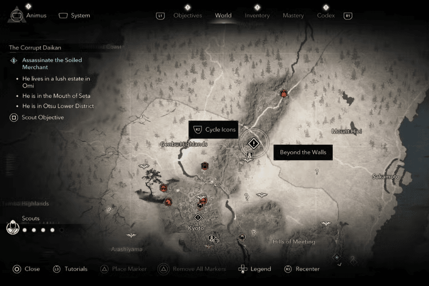 First, find the “Beyond the Walls” quest marker in the northern centre of Yamashiro, right along the road leading to Omi.