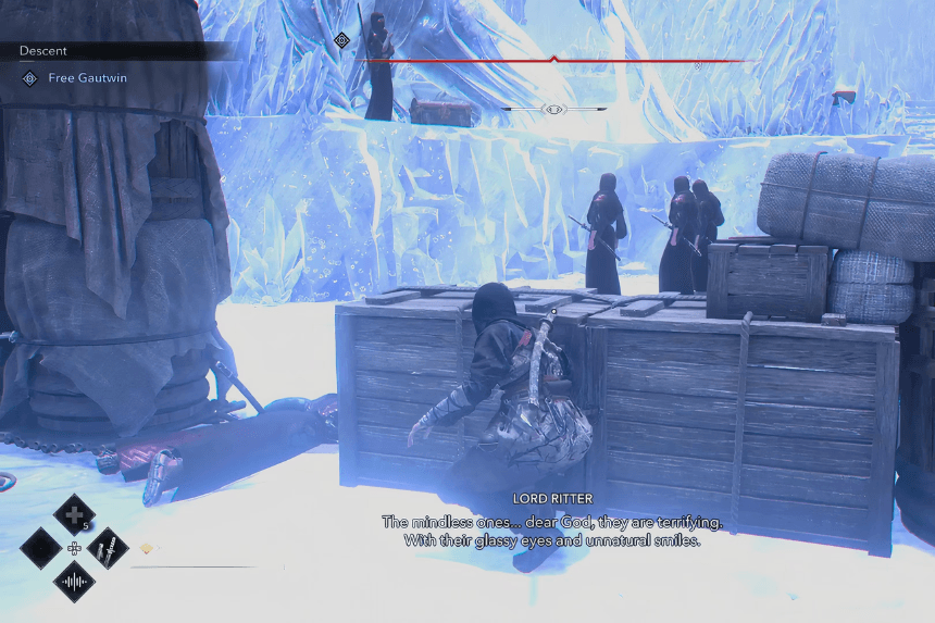 Liberate the surviving Scout, Ada, who explains that Gautwin was manipulated by Albrecht and Ritter. To do this, the quest switches you over to Naoe, who must infiltrate the caverns stealthily and create a route for Yasuke and Ada.