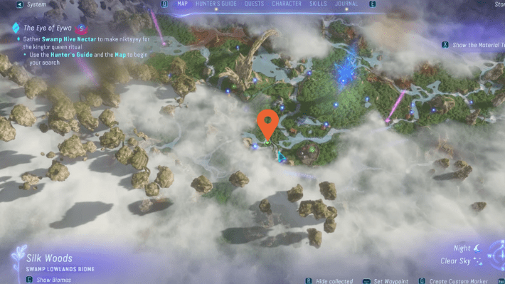 Your Hunter’s Guild will guide you towards the location of Swamp Hive Nectar, but you need to scavenge the area to find it. Here we will see how to gather Swamp Hive Nectar in Avatar Frontiers of Pandora.
