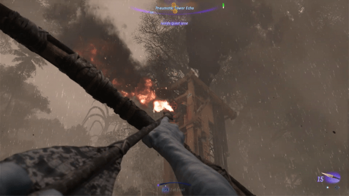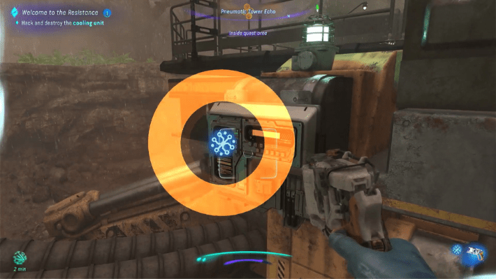 While exploring Spinner’s Circle in the Rainforest Biome, you will encounter an RDA mining device that is wreaking havoc to the surrounding environment. It is up to you to destroy the generator and cooling unit as you inch closer to destroying the Pneumatic Tower Echo. Once you reach the Pneumatic Tower Echo, you can scan the area to spot the generator and cooling unit. The generator will be easier to find as there are less enemies around it. Make your way over there and shoot the generator with your arrow to destroy it.