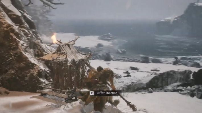 Head right of the shrine and follow along the lake’s shoreline till you come across some skeleton remains. Go past it while sticking to your left to get close to the Celestial Pear tree