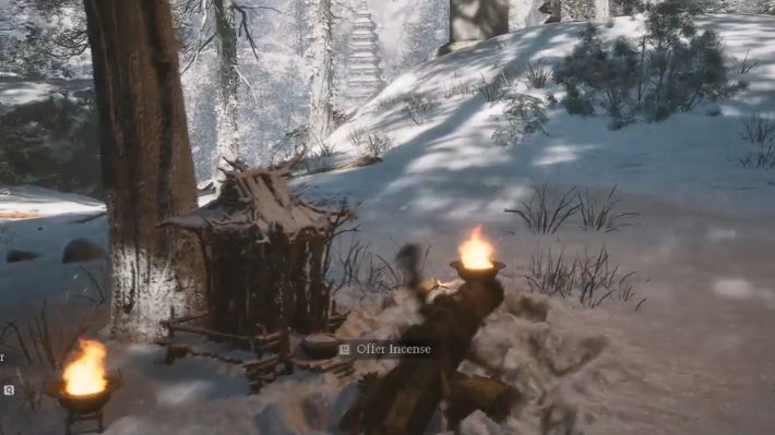 Turn around 180 from the shrine and look to your left to find a flight of stairs going up. Before entering the temple entrance, take the left path and follow it. Climb up the stone wall on the left side by using your jump attack and go uphill. Keep to your right and follow the path to find the Celestial Pear tree on your left