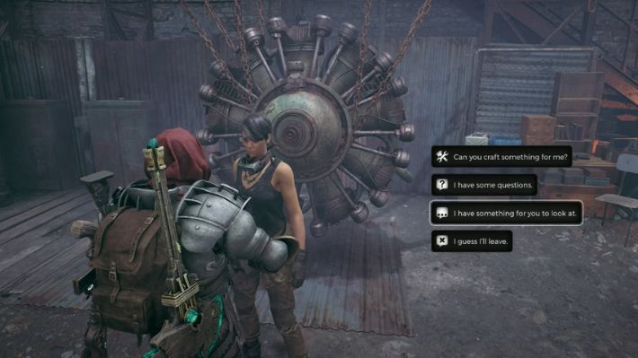 After a few more dialog choices, and it won’t matter which dialogs you pick after the initial interaction, Ava will ask you to wait for a while to be done crafting the weapon. You can exit the conversation and continue doing other things around the world. Or you can just close or restart the game, load back in, and head over to Ava. Talk to her and ask her if she is done to get the completed Black Greatsword melee weapon. With this weapon, you get the Indomitable Strike weapon mod, which grants you the following effect: