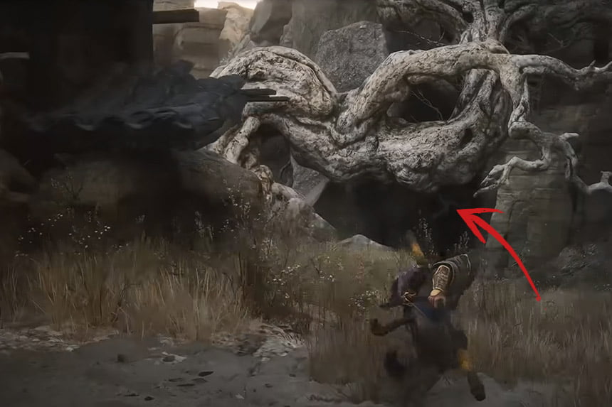 Spawn at the fast travel point in Sandgate Village in Sandgate Village in Yellow Wind Ridge. Turn back and go through the bridge that leads into the village. Do not go into the village; instead, take and right and tread along, skirting the boundary of the village. At the end of the village, near the tree, as shown in the image above, there is a small entrance that takes you into the village. Go through it, break the woods in the way and it will take you into the heart of the village.
