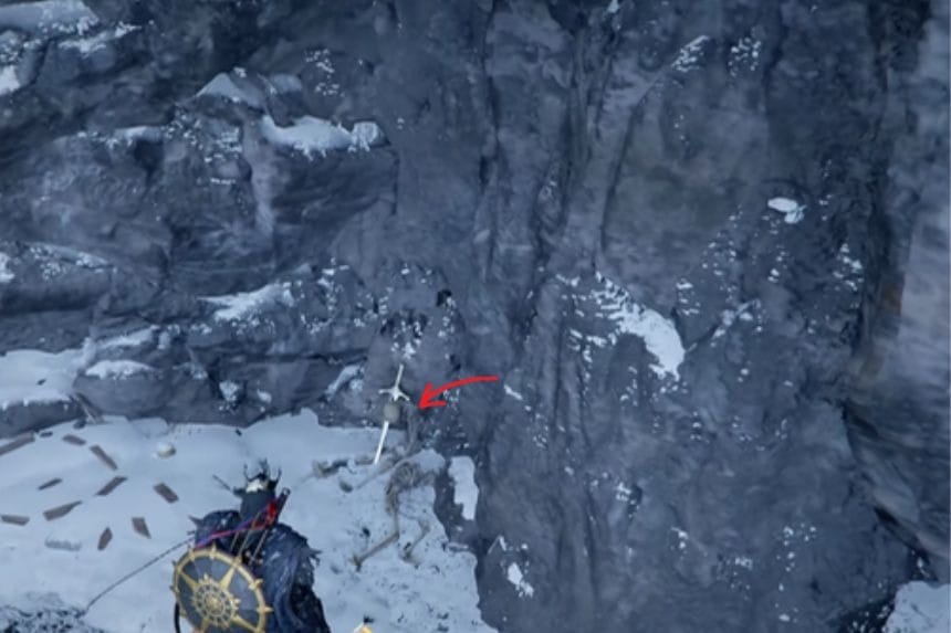 Go to the marked location using fast travel, then proceed directly through a continuously straight path and make a left. Continue through the rocky passage to emerge at the back of a cave. There you will locate a skeleton; either engage with or break the skeleton to retrieve the Chillfallen Blade that you’ll find lying nearby