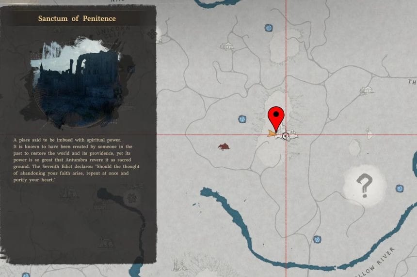 The Sanctum of Penitence can be found southeast of the Hernand City, which is located at the Crimson Desert. To get to it from the city, simply head towards the southeastern part of the map.