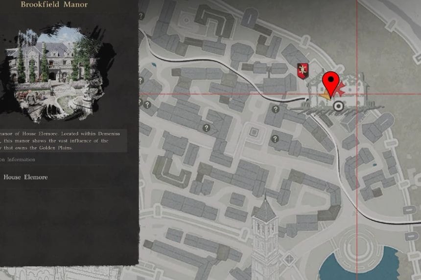 You may find this strongbox inside Brookfield Manor, which is situated in Demeniss on the northeastern side of the city. The strongbox is hidden on the second floor behind a roataing bookshelf. First, climb up to the second floor balcony and then enter through the open window. Once inside, go to the second floor and examine the turning bookshelf.
