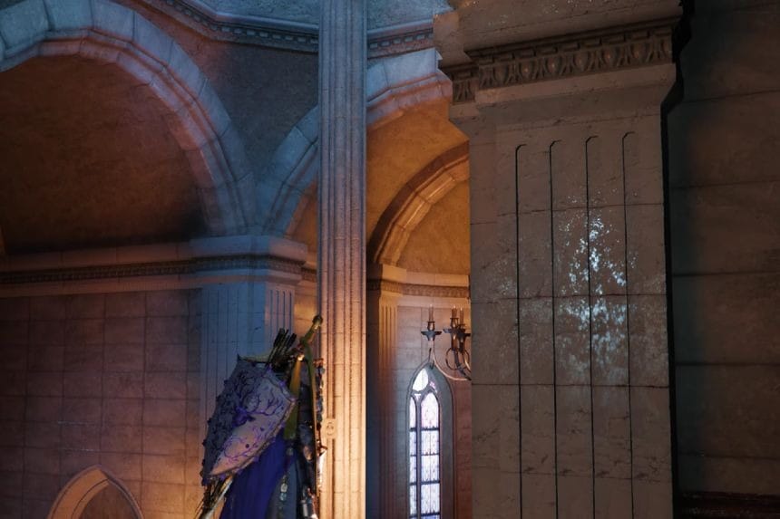 You can get it a little later in the game, although it is still possible to reach the area earlier if you travel carefully. To find the Nazk Sword in Crimson Desert, you need to go to a church in the town of Dellesia. The church is located in the right part of the town. When you get to the church, go inside. Walk to the back of the building and you will see a statue there. Light the candels that are next, to it.