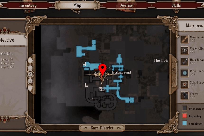 - Locate the Floodgate control panel at the Dam in the Ram District to begin the puzzle.