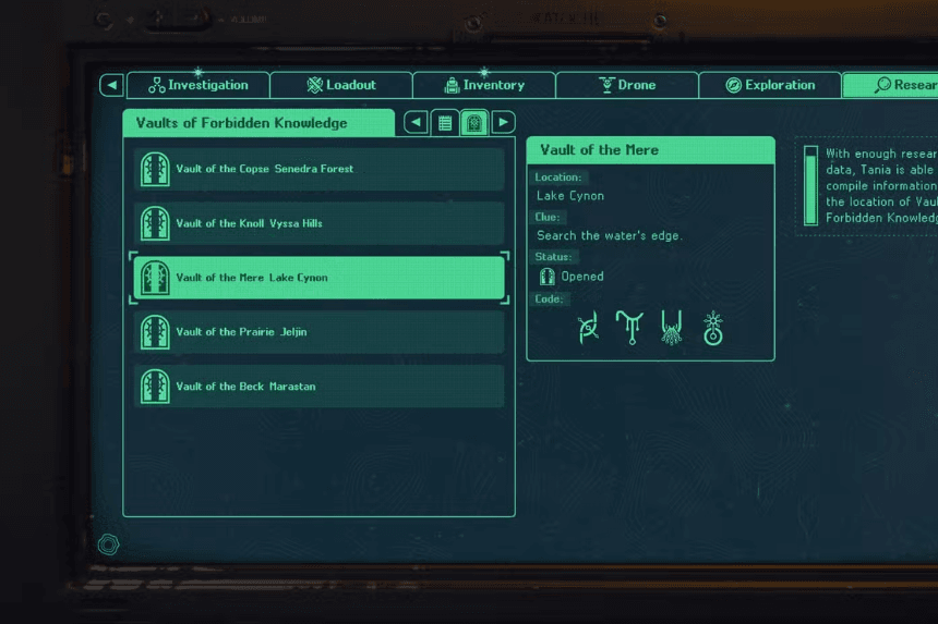 Das letzte Gewölbe erfordert etwas mehr Arbeit. Zu Beginn musst du den OMSIF-Beobachtungsposten im nordöstlichen Teil der Sümpfe betreten. Das Tor dort lässt sich mit dem Zahlencode 151991 öffnen. Geh hinein und navigiere dann nach hinten, wo dich eine Höhle tiefer in die Ruinen führt. Dort findest du die letzte Gewölbetür, die du mit der Sequenz aus Wut, Ekstase, Schrecken und Trauer öffnen kannst.
