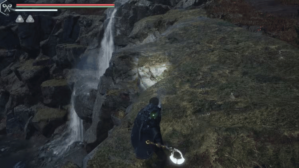 Ein weiterer Tresor befindet sich in den Vyssa-Hügeln, hinter einem Wasserfall, der früh in der Region erscheint. Die Schwierigkeit besteht darin, ihn zu erreichen. Sie müssen sich von oben nähern und vorsichtig in die Höhle hinter dem Wasserfall hinabsteigen. Sobald Sie drinnen sind, lautet der Code zum Öffnen der Tür: Bewunderung, Erstaunen, Ekstase, Wut.