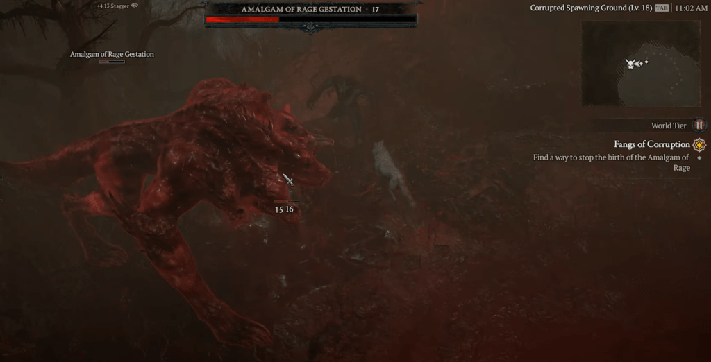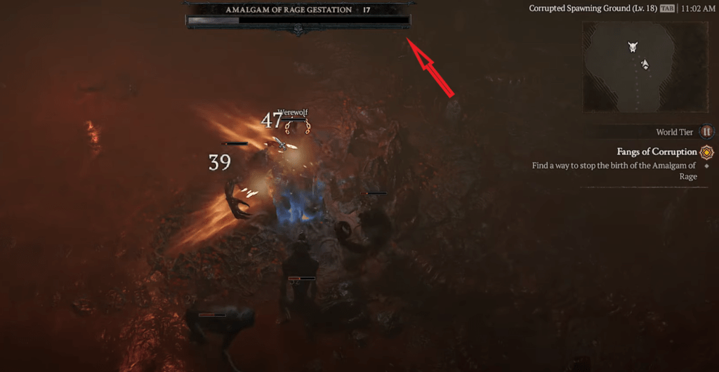 - The boss is called Amalgam of Rage Gestation but at the start, players will see that the boss’s HP is slowly regenerating