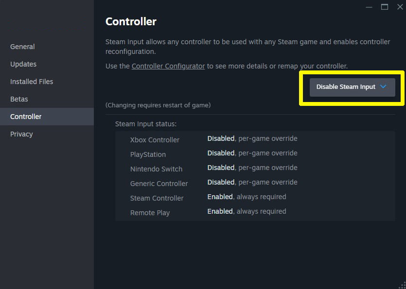 Many players have managed to resolve this issue simply by disabling Steam input. Here is how you can do it: