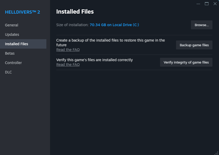- Go to Installed Files and Click on Verify Integrity of Game Files.