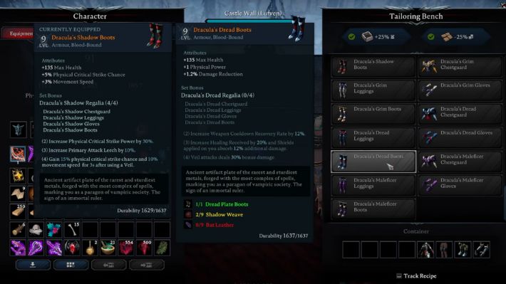 Unlike other RPGs where you have to level up with XP, in V Rising you will need to accumulate Gear Score to find out if you are worthy enough to take down bosses and other enemies. Your gear score is determined by all your equipped gear, and you can check your score in your inventory. You can also check the number shown beside your health bar while in-game to see how well you score. You can change your score by finding new, higher-powered items, or unequipping the ones you have.