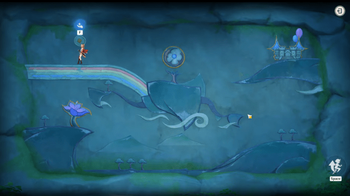 Once inside, pick up all the mural pieces first. After that, go to the far left side and position the Flower of the Valley mural fragment there. Climb up to the central platform and attach the Central Hub mural fragment. Jump to the far right and place the Sky Keep mural fragment. This will unlock a rainbow passage that leads to the final area. Use the rainbow to get up to the last platform and attach the Swirling Clouds mural fragment. Placing them all correctly will complete the mural puzzle inside the mysterious cave.