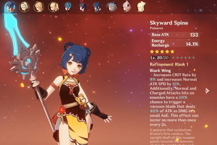 Why It Works: While the passive isn’t very useful for Shenhe, the high Base ATK and generous Energy Recharge make Skyward Spine a functional and reliable option, especially if you’re struggling with her Elemental Burst uptime.