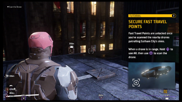 Lucius will tell you about how he helped Batman by supplying gadgets for him when he was alive, and he wishes to do the same now. He has designed a new vehicle that will enable fast travel, but before you can test it out you need to scan the GCPD Surveillance air drones. These drones are found across the city, and they will shoot you if they spot you. Use the AR scan to find them on the map, there are drones across each fast-travel location. After scanning all of them and turning them neutral, you can use the new gadget to fast travel across the city.
