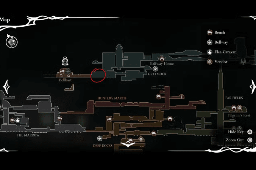 Moorwing is located in the lower-left quadrant of Greymoor, an area comprised of flying insects and scissors-and-trident-wielding enemies, and other nasty implements. Simply surviving this portion might test your patience.