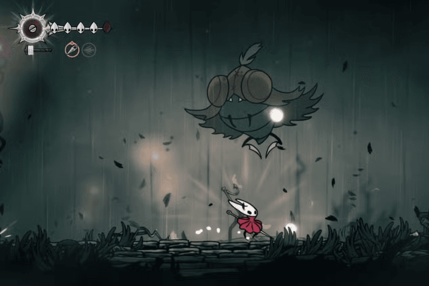 Prior to heading off to Moorwing directly, it is worth taking a side trip into the Reaper’s Chapel, just above his den. There lies the Reaper Crest, a metamorphic item for this fight, which gives Hornet additional sustain through its Bind special effect.